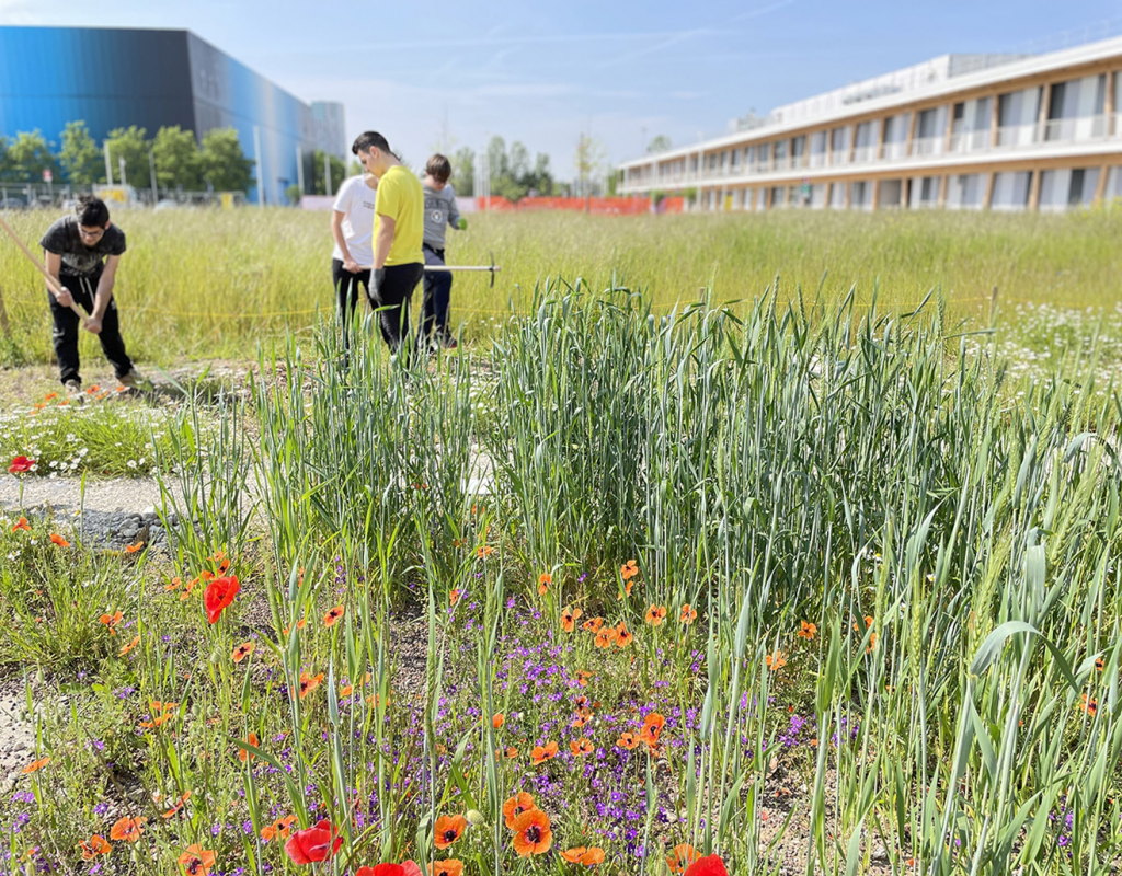 Il percorso ha coinvolto gli studenti in una serie di attività, condotto sia in classe che presso il prato fiorito di MIND, finalizzate a conoscere ed entrare in contatto con la biodiversità locale. Nello specifico, durante le attività sul campo, gli studenti sono stati accompagnati da esperti di scienze naturali in un tour della biodiversità e sono stati coinvolti in un workshop guidato dal team di Polifactory. Il laboratorio consisteva nell’assemblare bug hotel appositamente progettati e prodotti dal team di progettazione attraverso tecnologie di fabbricazione digitale e nel comporre bombe di semi per seminare il prato fiorito stesso.